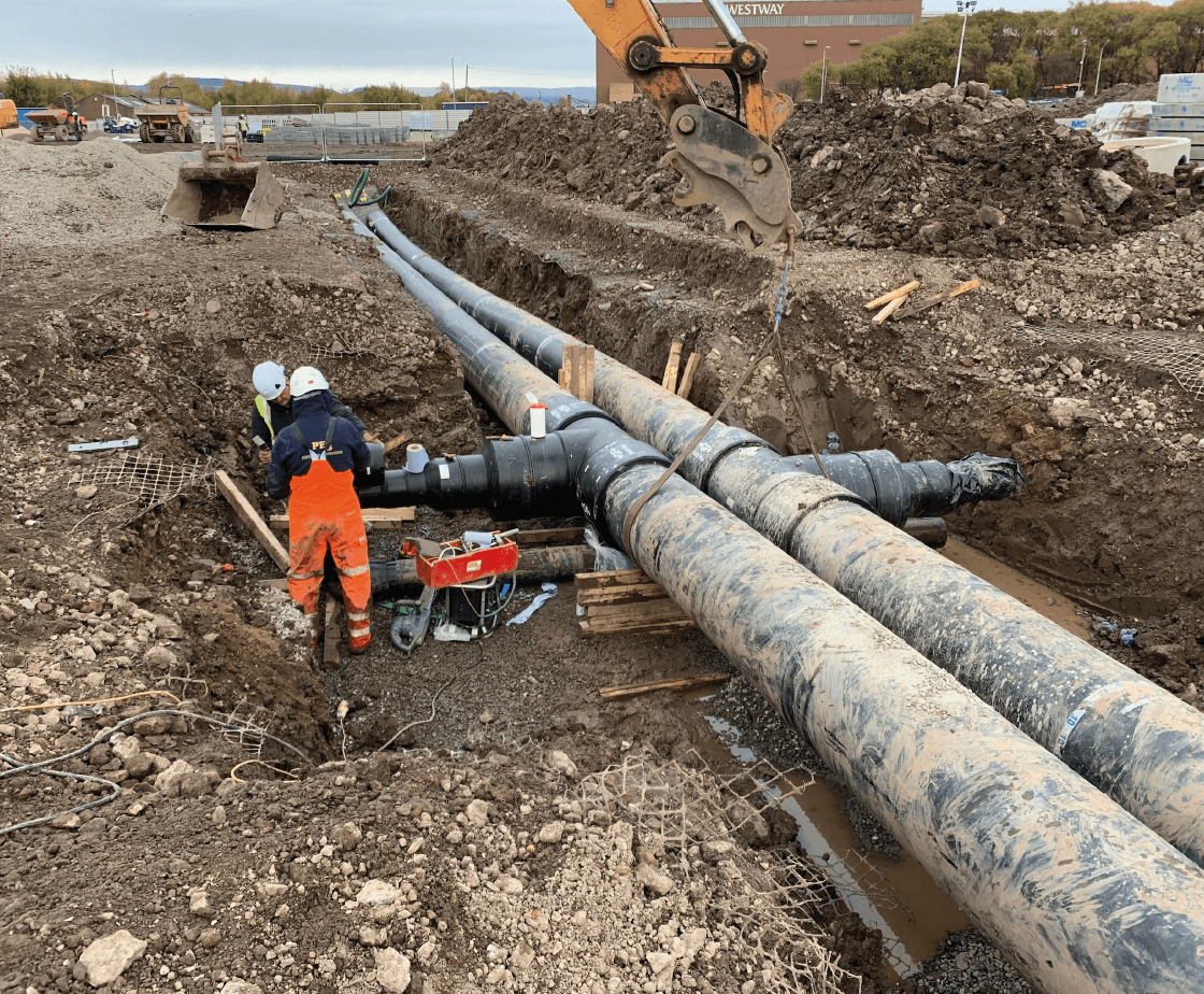We developed carefully programmed supply chain and logistics plans to ensure we could time our deliveries to suit adjacent construction projects – often sharing access routes with other construction traffic. We also carefully considered the pipeline valves and termination loop ends design so that the system can be adapted over time to meet the changing needs of heating users at AMIDS.