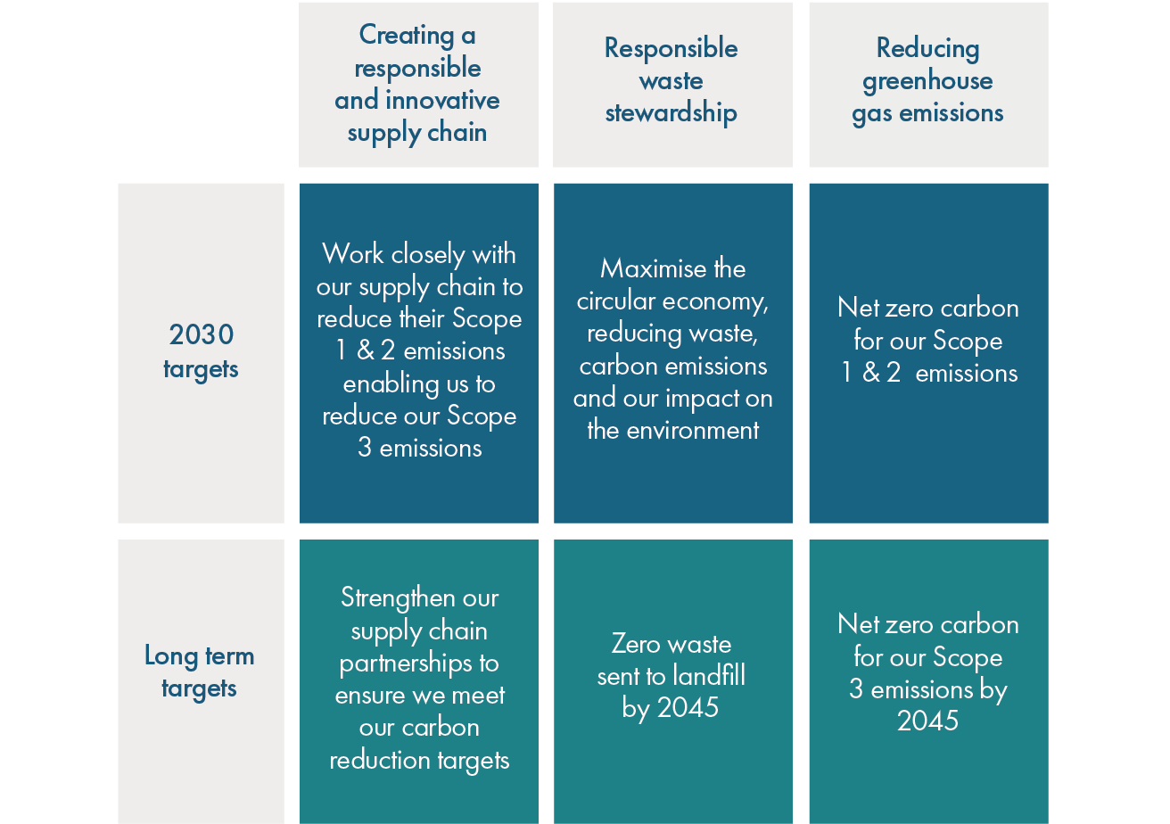 The UN’s SDGs are a globally recognised set of goals covering three focus areas: environmental, social and economic, demonstrating that all three must go hand in hand when progressing towards sustainable development. While our operations have indirect impacts on all the SDGs, we have taken steps to align our strategy to the SDGs where we have the greatest direct impact. We have identified six priority SDGs aligned to our sustainability strategy, where we have a material impact across our business.